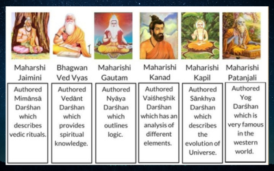 Maharshi Patanjali, a reputed scholar of the Yogic system and Sanskrit, wrote the most popular Yog Darshan, which is a part of the Shad Darshan (i.e., six philosophical thesis). Six sages (see image below) inscribed these works to help people understand and implement the knowledge of the Vedic scriptures in their daily lives.