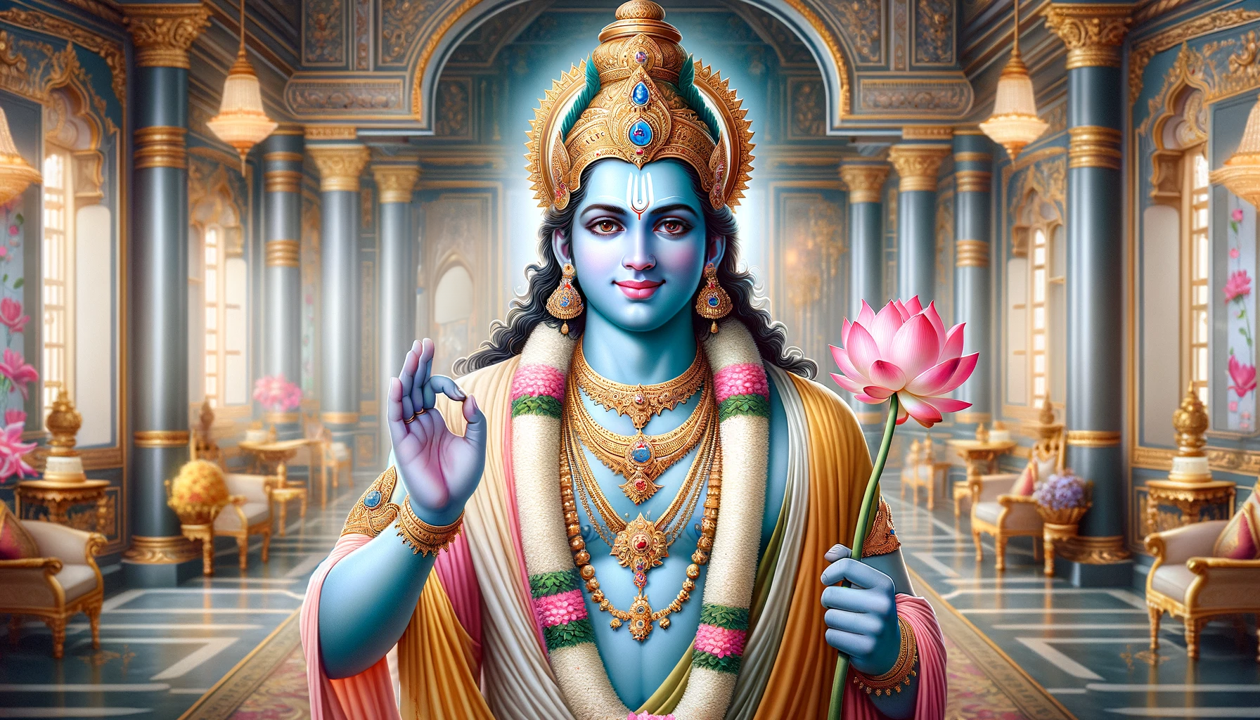 Kaushalya’s womb became empty. However, Bhagavan did not manifest as a little child. He manifested in his Chaturbhuj Swaroop (four arm form).