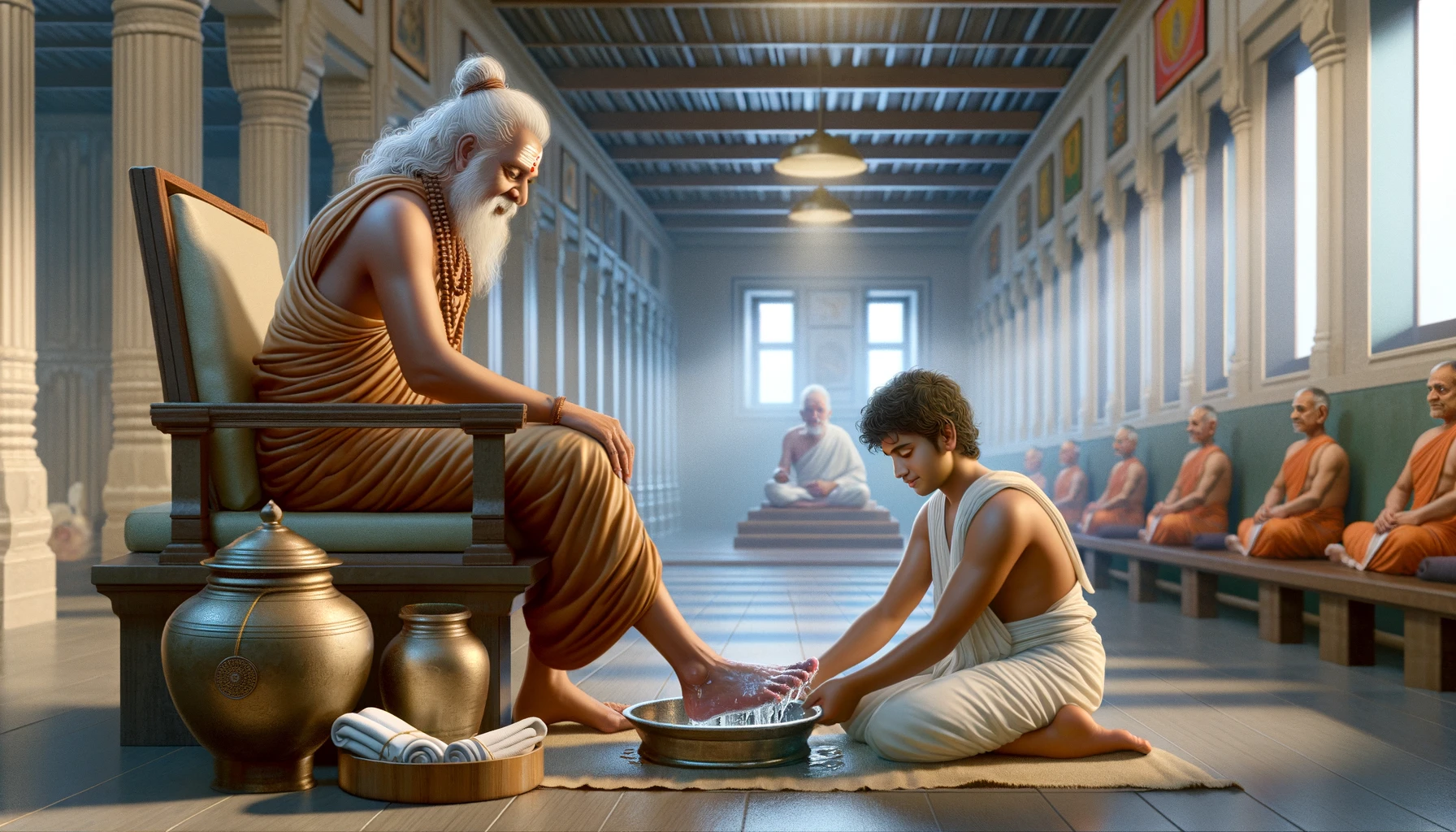 The mentor-mentee relationship between a Guru and disciple is not merely that of a teacher and student, but deeper than the ocean bed. The Guru is a spiritual guide who imparts knowledge, wisdom, spiritual guidance, and divine inspiration that fructifies the efforts of the disciple. The disciple, on the other hand, is sincerely committed to learning and growing under the Guru's guidance with an attitude of reverence, humility, trust, devotion, surrender, and servitude.