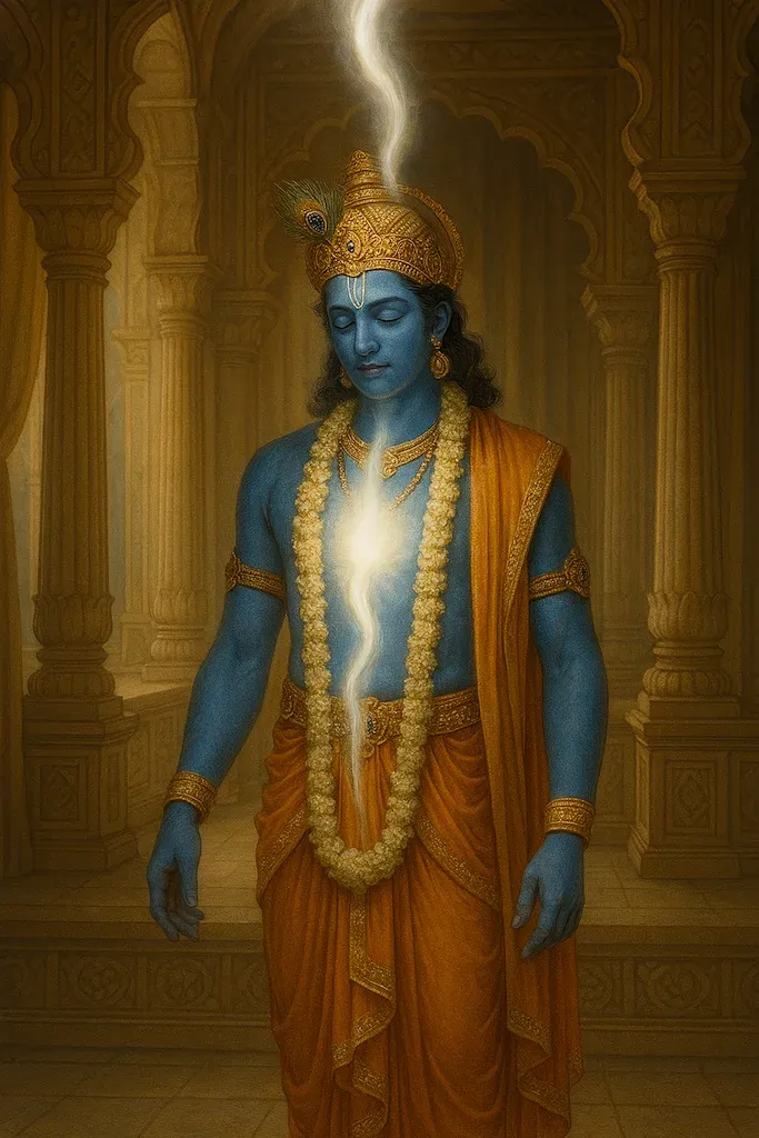From Shishupal’s body emerged his soul which ascended and merged into the divine form of Shree Krishna. This was no ordinary death. It was liberation. In spite of his enmity, Shishupal’s constant focus on the Lord—even through hatred—had purified his soul. His life ended not in defeat, but in union with the very God he opposed.