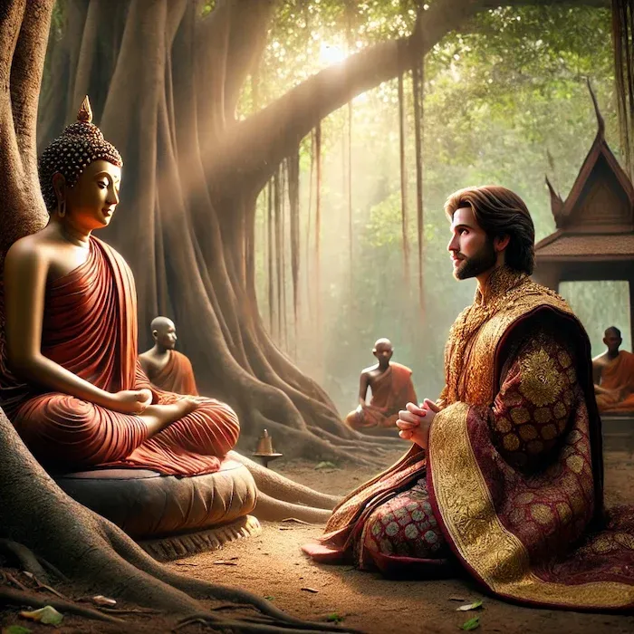 The Buddha, once a prince, renounced all luxury. When asked by Raja Prasenjit why he left it all, the Buddha responded with a question: