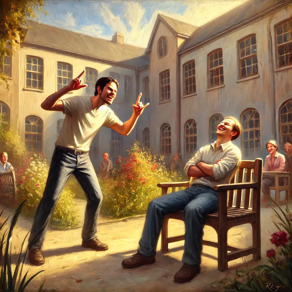 Once, at an institute for the hearing and speech-impaired, two inmates were seen quarreling. One was angrily gesturing in sign language, while the other had turned away, laughing peacefully. The warden explained: