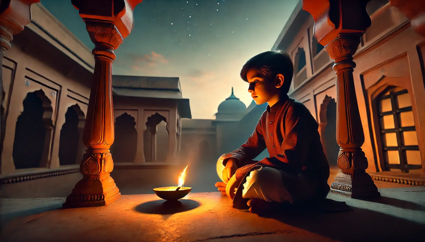 It was Diwali night. Aarav sat on his terrace, surrounded by lights yet feeling darkness within. His grandmother lit a small diya beside him.