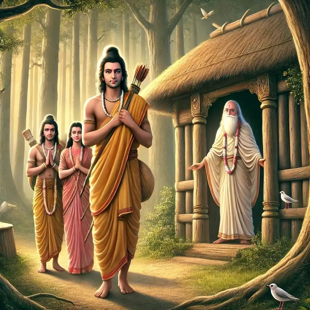 On the third day of his exile, Bhagavan Ram approaches the sage Valmiki and asks where he should reside for the next 14 years.