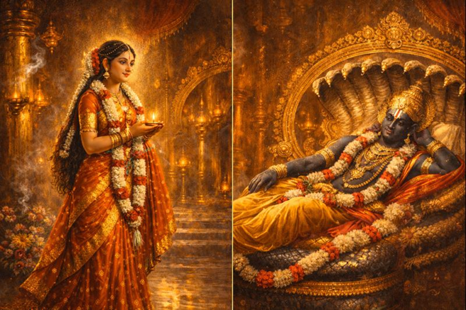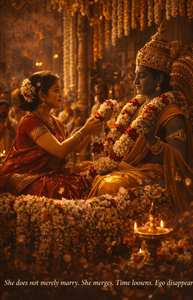 From that sacred moment, she is known as Andal—She who rules over the Lord. A title born not of power, but of love so complete that even the Supreme bends toward it.