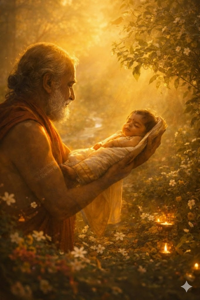 In the sacred town of Srivilliputhur lived a devoted servant of the Lord named Vishnuchitta. His world revolved around a single sacred act: gathering fresh flowers each day for the Lord’s altar.