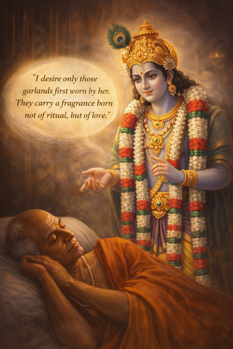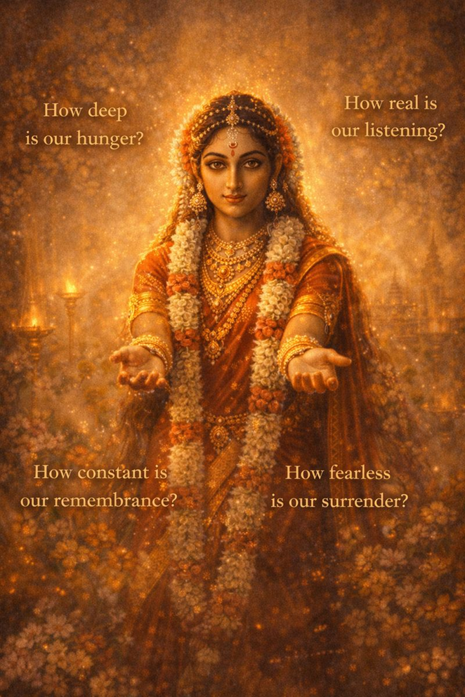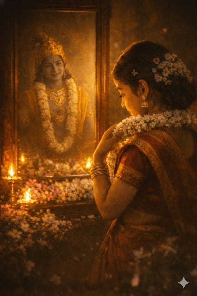 Andal did not seek God as an idea. She sought Him as life itself—not as philosophy to be understood, but as the Beloved without whom breath felt incomplete.