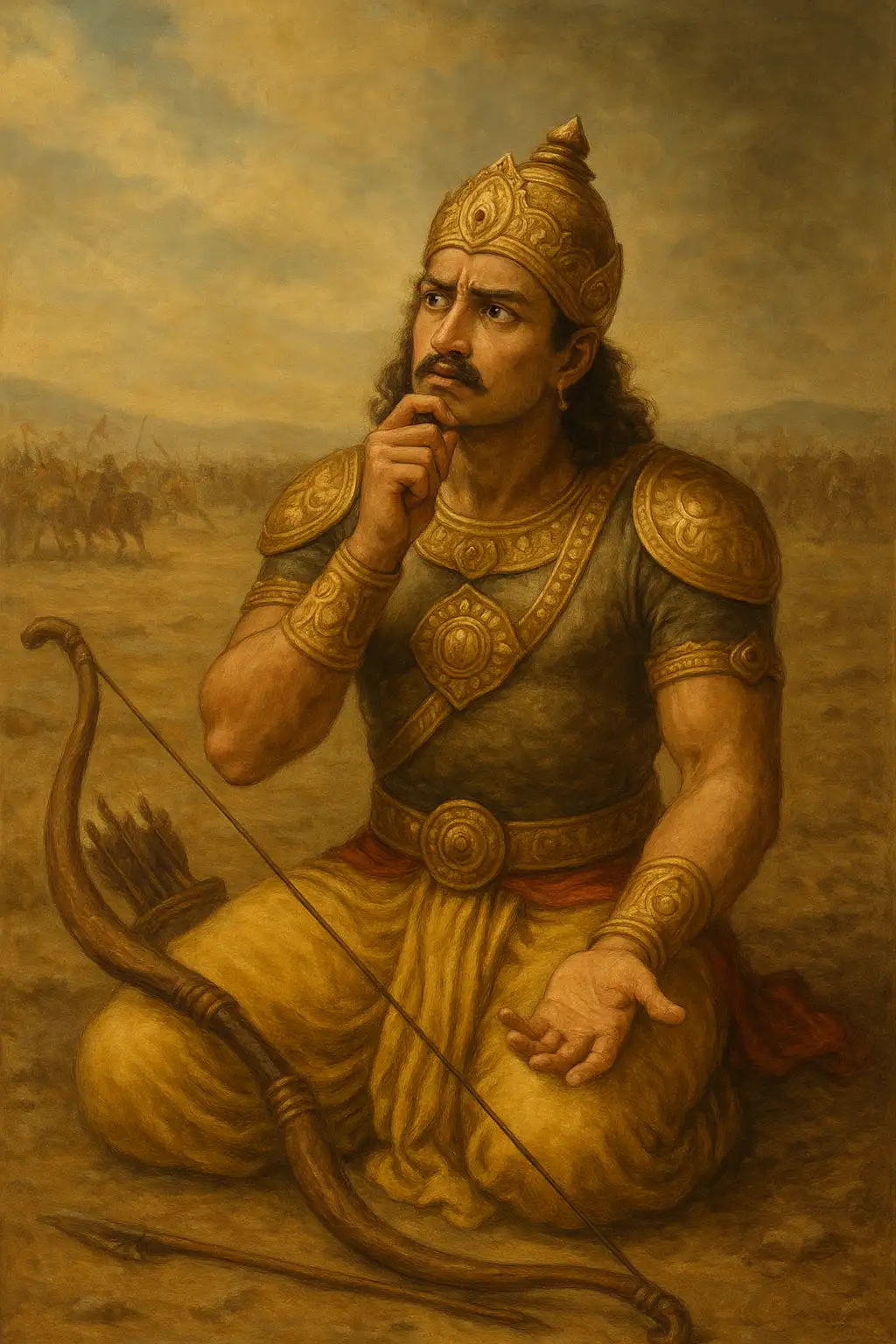 At the heart of the Bhagavad Gita lies the moral and spiritual dilemma Arjun faces on the battlefield of Kurukshetra. Overwhelmed by the prospect of fighting his own kin, teachers, and friends, Arjun contemplates abandoning his warrior duty. Would it not be better to renounce the world and seek God in solitude?