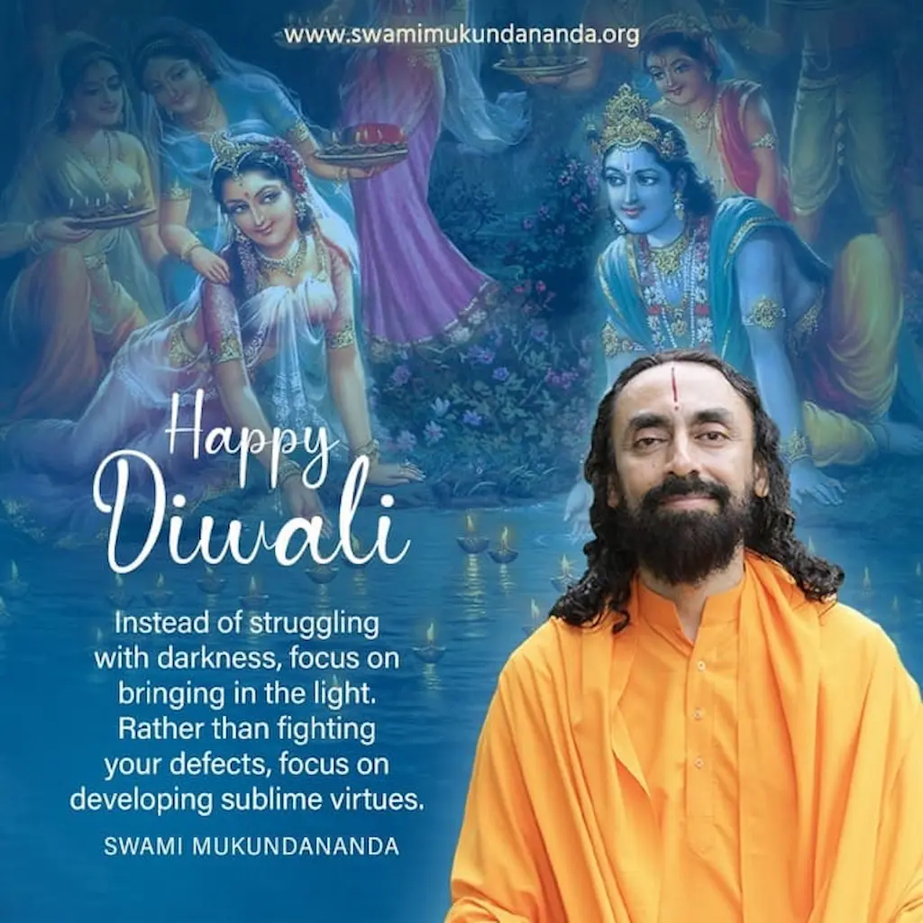 This Diwali, Swamiji invites us to recognize the light of knowledge and dispel the darkness of ignorance. He reminds us of the famous Sanskrit prayer: tamaso ma jyotir-gamaya, meaning “lead me from darkness to light.” As we light lamps this Diwali, let us also kindle the flame of wisdom in our hearts, realizing that the ultimate victory is not over external forces but over our own ignorance.