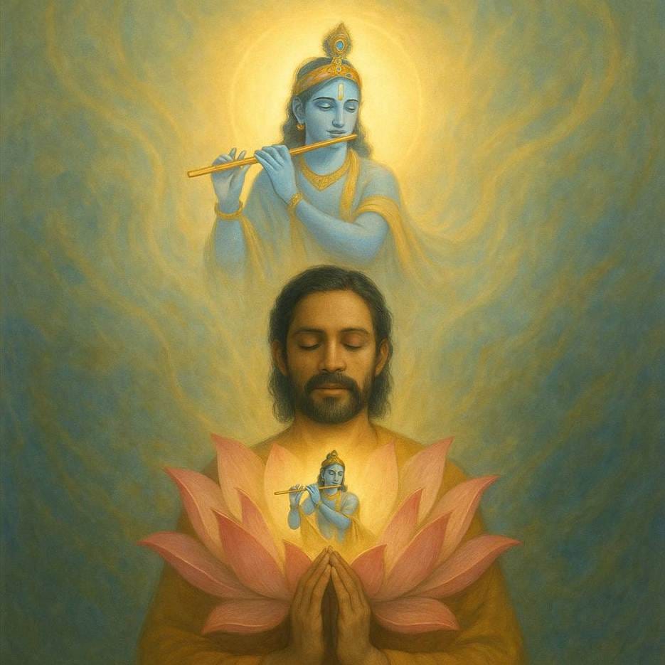 Make your inner world His playground. Invite Him into every corner of your life — not only in worship but also while cooking, walking, working, or resting. Let every action become a garland of love offered to Him.