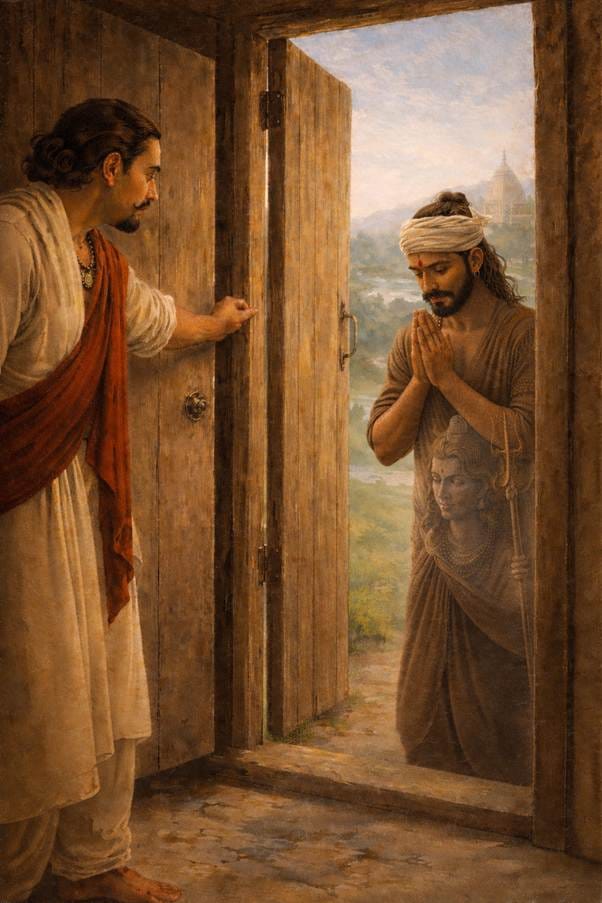 Vidyapati, a 14th-century poet-saint of eastern India, was a devoted worshiper of Bhagavan Shiv. When the Lord came to his home as Ugna, Vidyapati unknowingly engaged his own Ishtadev in service. He never imagined that the hands fetching water and the feet walking beside him belonged to the very Lord he adored with such fervor.
