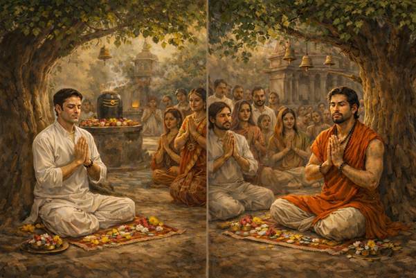 The story of Ram Dutt and Vishnu Dutt illustrates how desire-driven worship can cloud judgment and lead one astray. Saints, therefore, advise a different kind of prayer—one rooted in humility and trust: