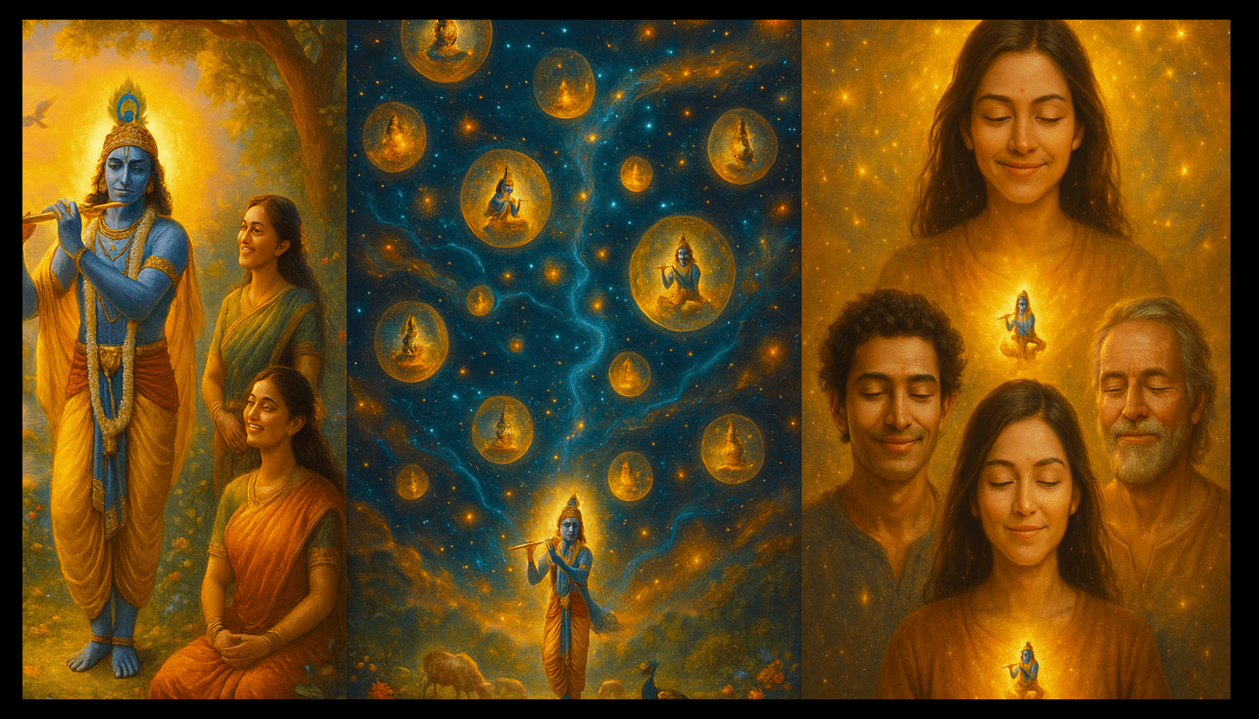For spiritual aspirants, the implication is that while God uses His Law of Karma to dispense justice as per the actions of the souls, He applies the Law of Grace for those devoted to Him in the spirit or act of surrender. He compassionately showers His divine knowledge, bliss, and love upon such souls, and is even willing to serve them. God performs all these inconceivable functions through His potent Yogmaya Shakti (p. 68). This knowledge must deepen our devotion and love for God by making the effort to perceive His presence everywhere around us.