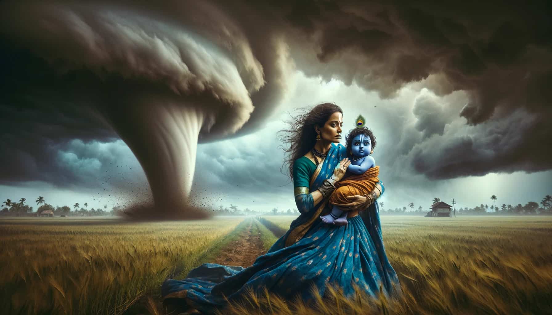 Among the first challenges in Krishna's childhood stories came shortly after his arrival in Gokul. Kamsa, still determined to eliminate the prophesied threat, dispatched a fearsome demoness named Putana, skilled in the black art of killing infants through sinister methods.