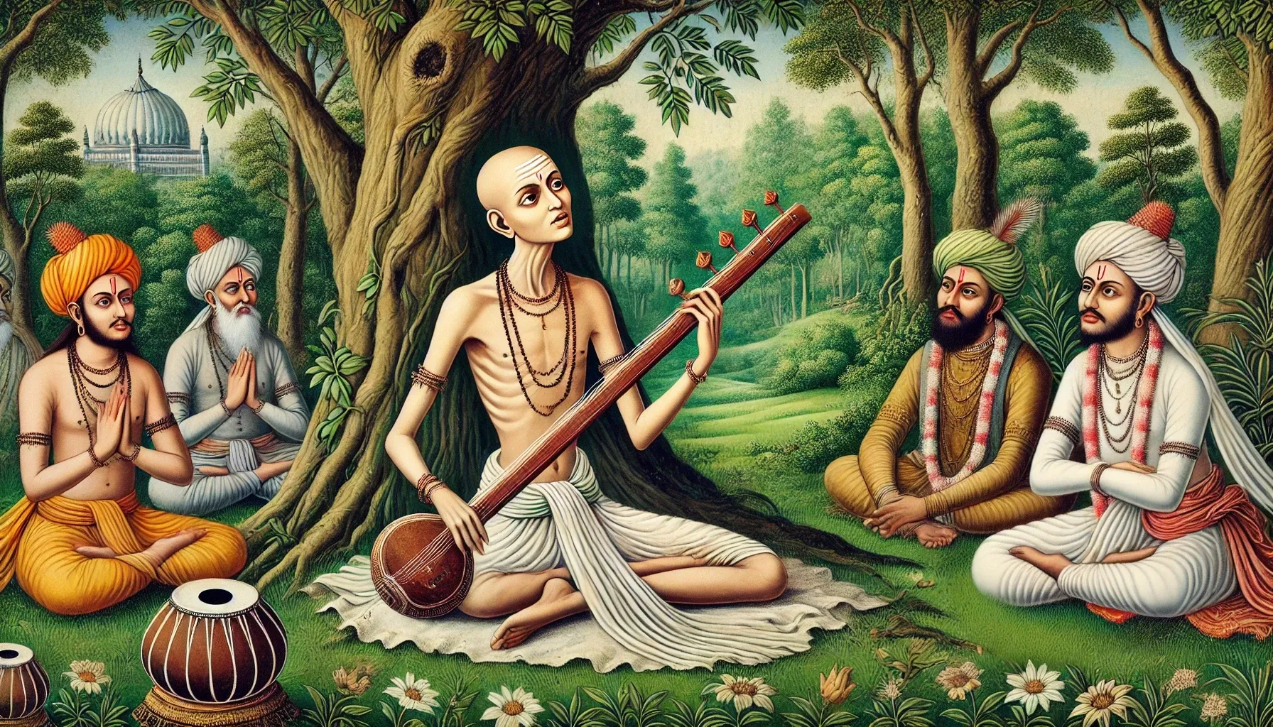 The story of King Akbar and Tansen exemplifies the difference between karm and karm yog. When Akbar heard the bhajan sung by Swami Haridas ji, Tansen's Guru, he was moved by the divine quality of his voice. He asked Tansen why he could not sing like his Guru. Tansen explained that while he sang for worldly fame and favor from the king, Swami Haridas sang selflessly and solely for the pleasure of God, expecting nothing in return.