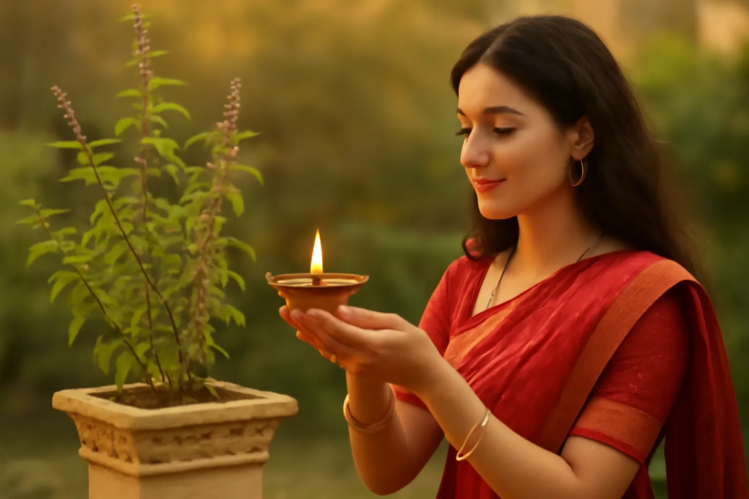 Tulsi, the sacred basil plant, holds a special place during Kartik. Devotees offer lamps and prayers to Tulsi Mata, especially on Tulsi Vivah, which marks the symbolic wedding of Tulsi and Lord Vishnu. This festival beautifully celebrates purity, devotion, and the harmony of divine union.