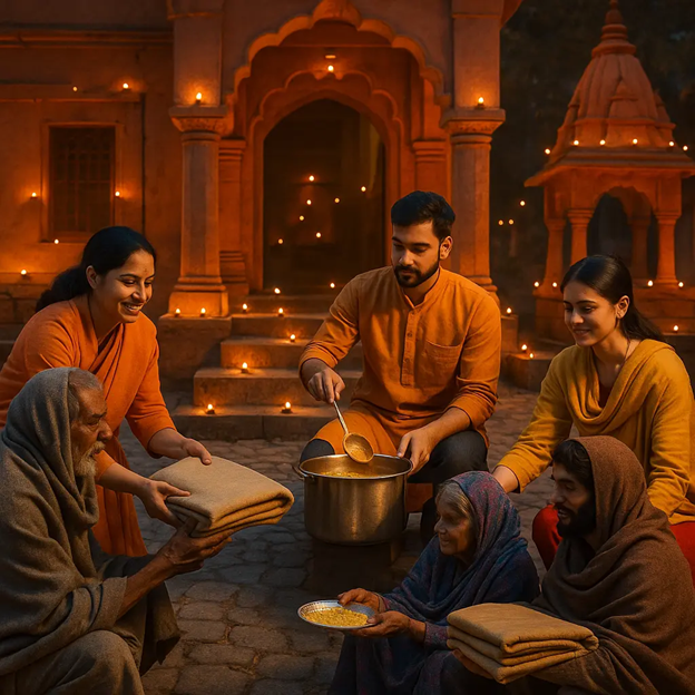| Charity and Service (Seva and Dāna) | Compassion and selfless love | Acts of charity—feeding the poor, donating lamps, clothing, or food—are central to the observance. They symbolize surrender of ego and service to God through humanity. |