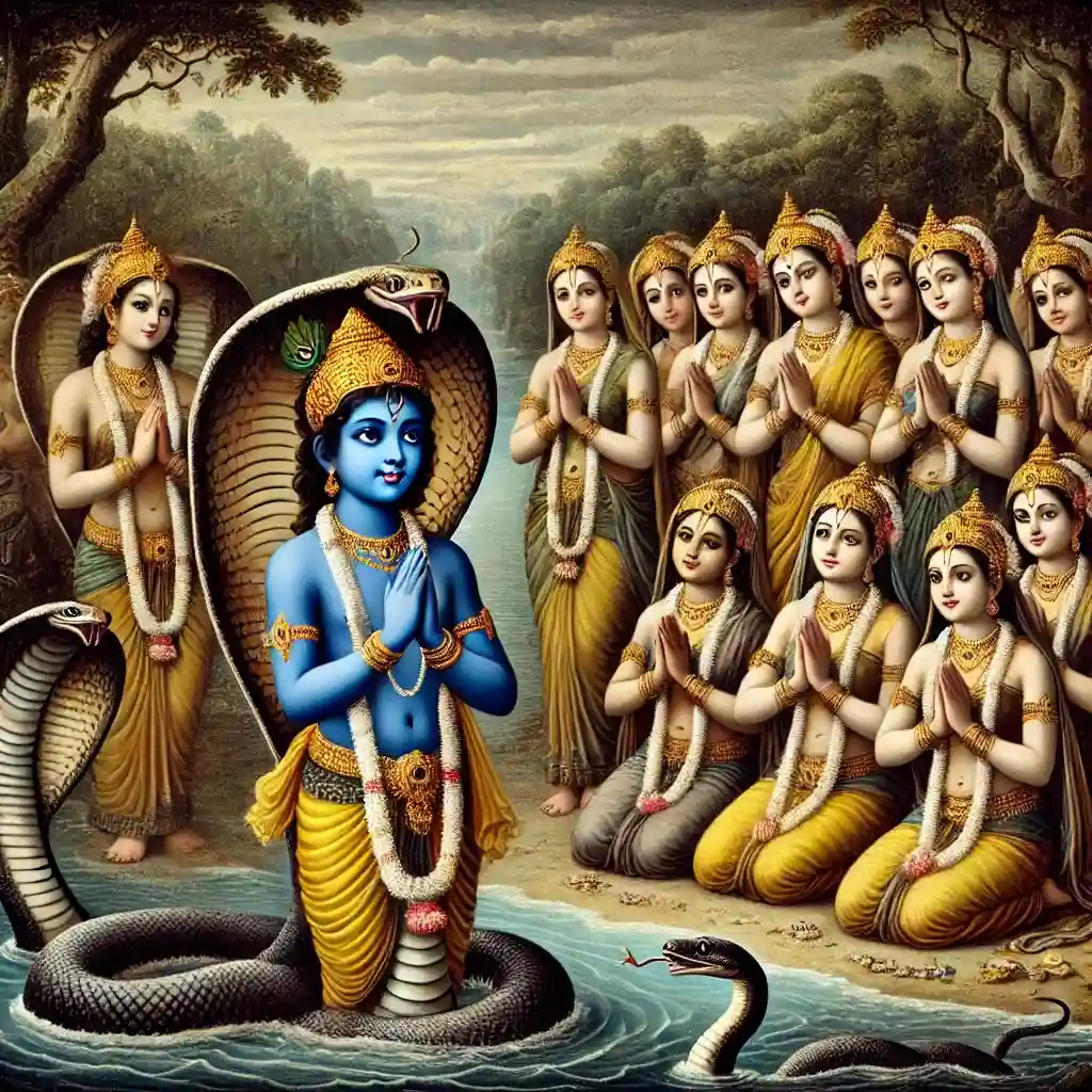Kaliya was a powerful and poisonous serpent who had made the Yamuna River his home. His venom was so potent that it poisoned the water and even the air above it, causing children to faint just by nearing the river.