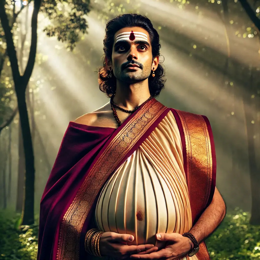 The sages, being omniscient, immediately understood their arrogance and pronounced a curse, stating that from the womb would emerge an iron rod, the cause of the destruction and death of the entire Yadu dynasty. Fearful of the curse, the Yadus returned to Dwarka and informed King Ugrasen of what had occurred. Upon examining the saree, King Ugrasen found the iron rod, confirming the sages' curse, and he ordered the rod to be ground into pieces and thrown into the ocean.