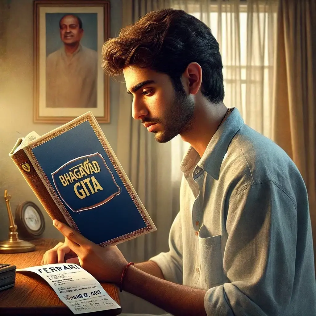 As a graduation gift, the boy expects a Ferrari. Instead, the father gifts him a Bhagavad Gita—an eternal reservoir of spiritual wisdom. Disappointed, the boy discards the gift, severs ties with his father, and leaves.