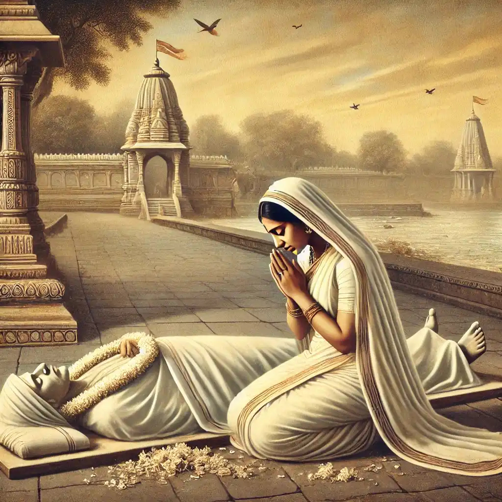 While residing in Kashi with his disciples, he experienced a moment that was to shake the very foundations of his belief. As he made his way toward Manikarnika Ghat, the group was stopped by a woman sitting on the path with her deceased husband’s body. Overwhelmed with grief, she cried uncontrollably, questioning why her husband had died while others continued to live.