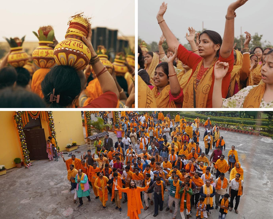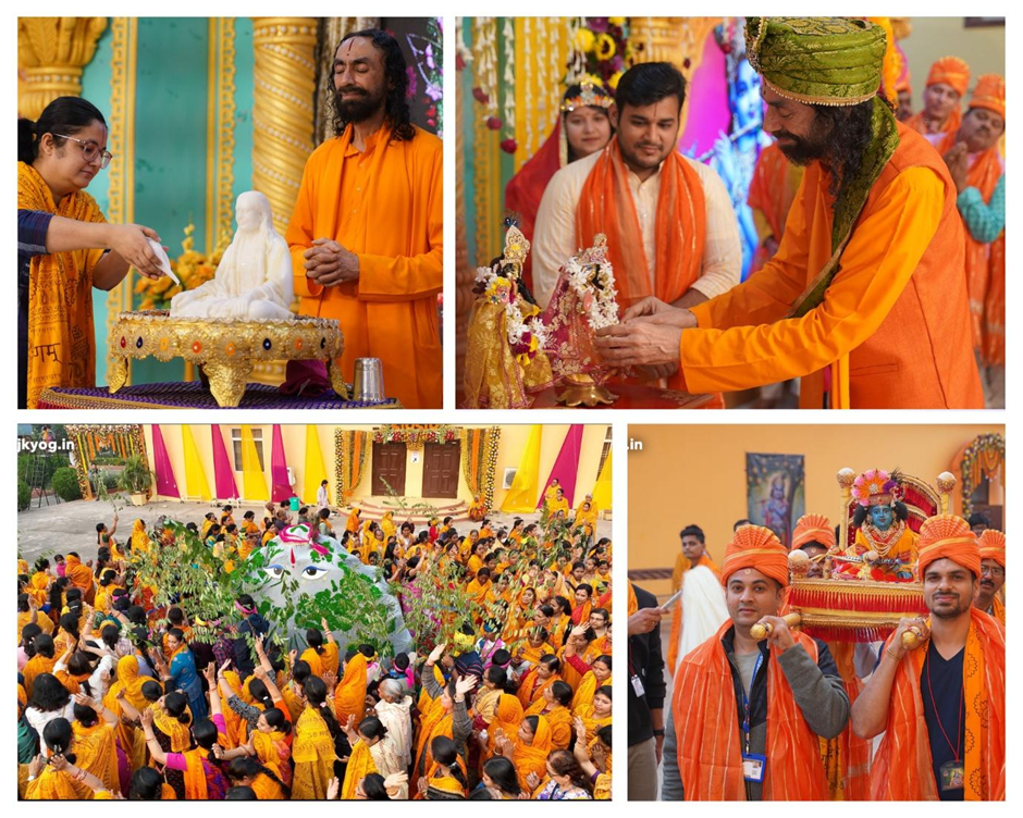 A jubilant parikrama followed, accompanied by the kirtan “Aaj Dulha bane hain Nandlaal.” In a playful moment, Swamiji ran ahead, laughing, with devotees joyously following Him. In that instant, age and formality dissolved, reminding all that bhakti flourishes in childlike simplicity and trust.