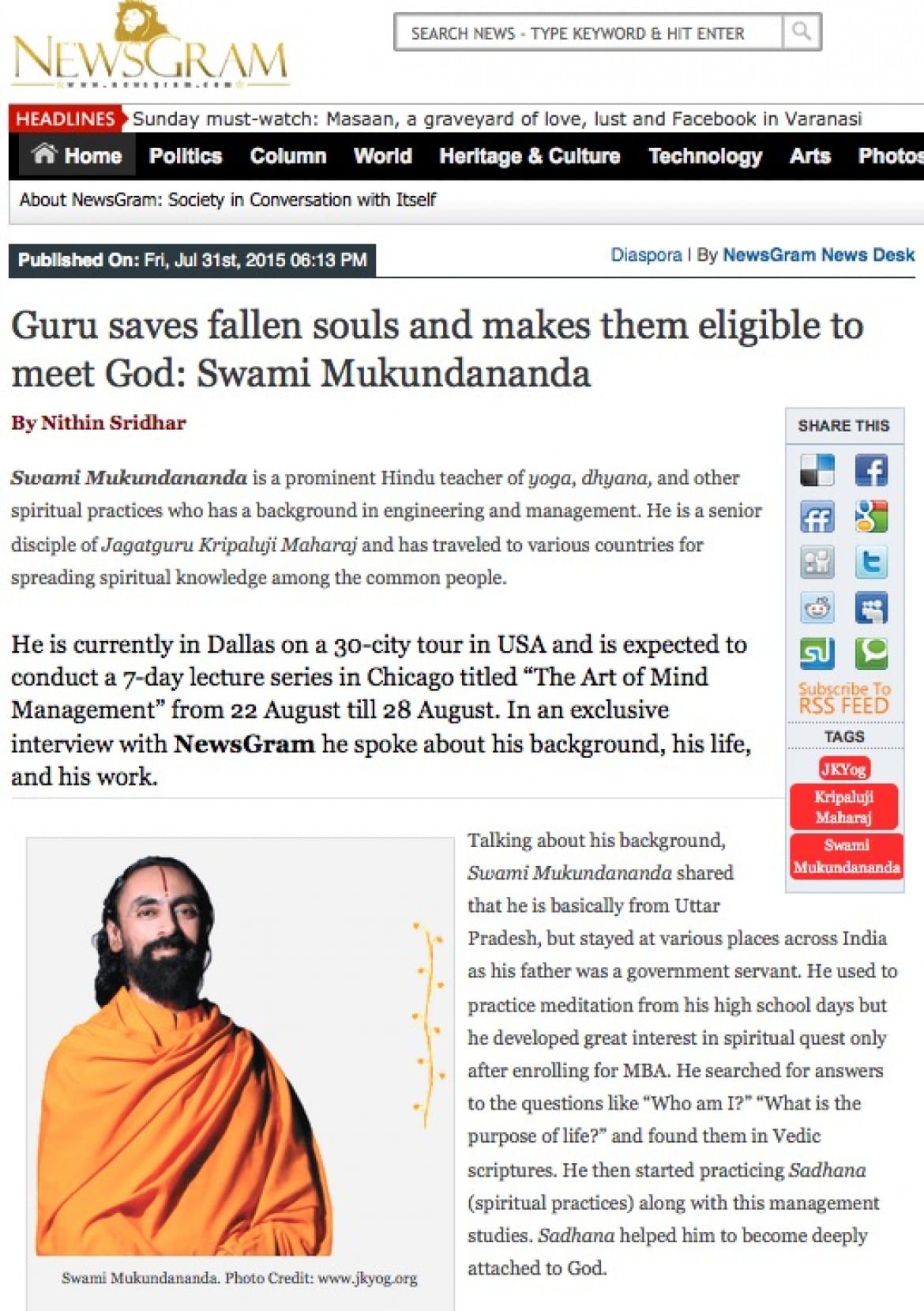 He is currently in Dallas on a 30-city tour in USA and is expected to conduct a 7-day lecture series in Chicago titled “The Art of Mind Management” from 22 August till 28 August. In an exclusive interview with NewsGram he spoke about his background, his life, and his work.
