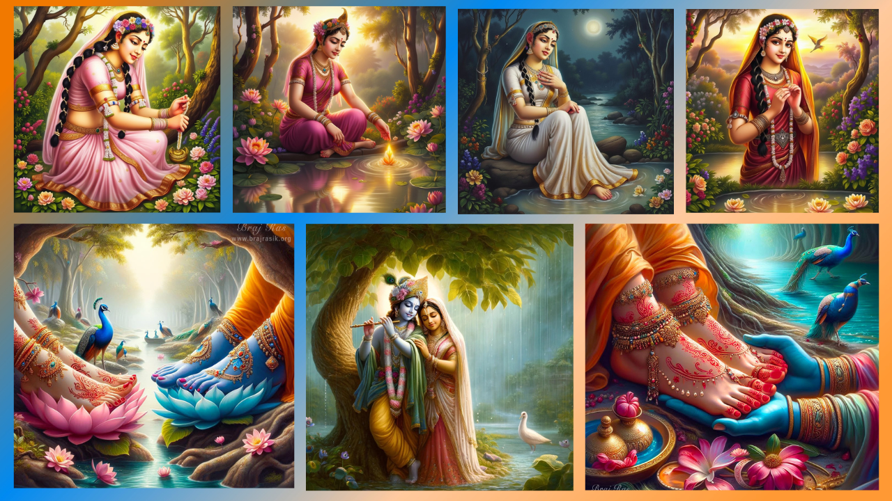 Shree Krishna, the Lord of all creation, remains captivated by Radha Rani’s divine love. Her love, known as Madan (the highest form of love), surpasses all forms of devotion. Every pore of His body reverberates with the name "Radha," as He yearns to serve Her and experience the depths of Her love.
