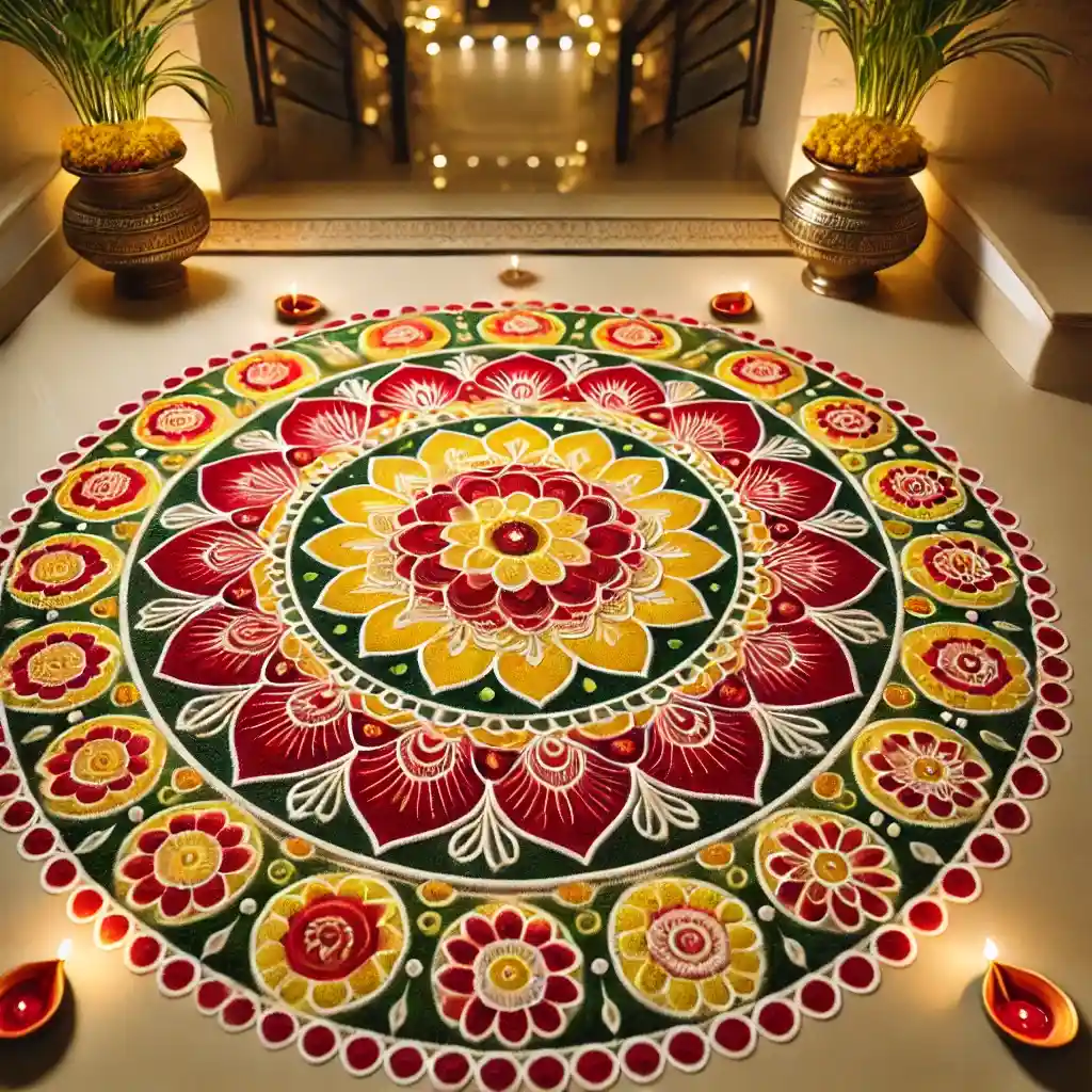 Discover vibrant rangoli ideas blending tradition and innovation. Whether you love floral motifs, geometric patterns, or eco-friendly designs, these detailed guides on our partner blogs will spark your creativity this festive season!