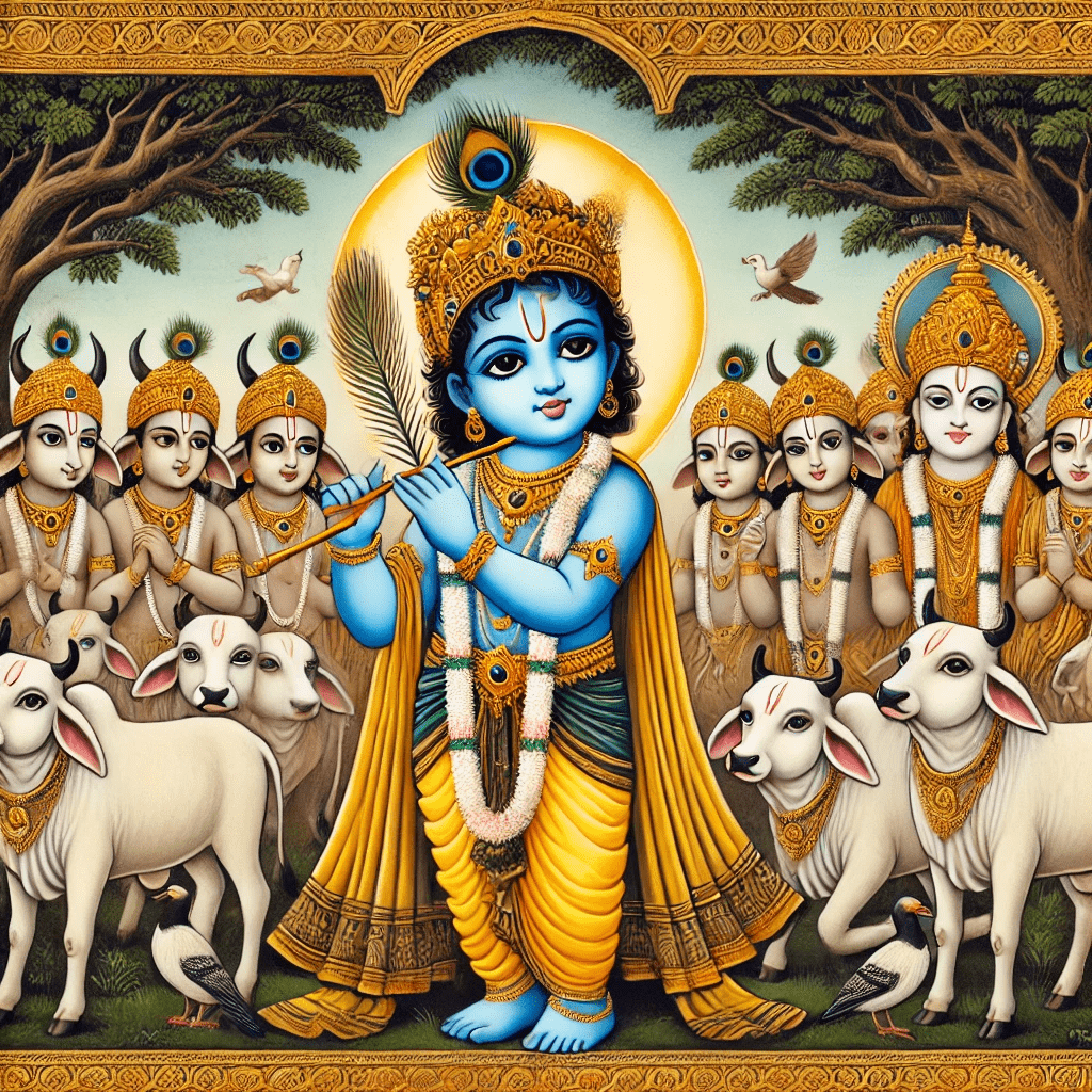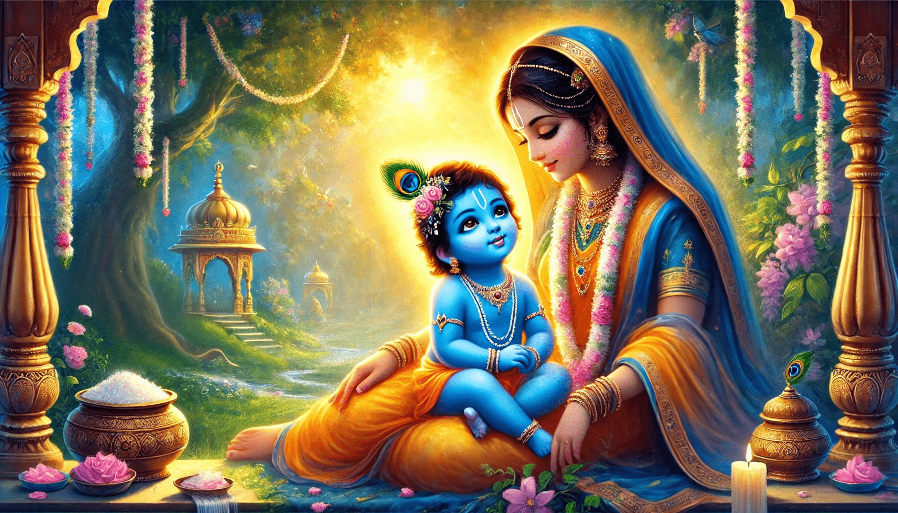 In the material realm, the closest one can come to experiencing inner joy is when engaged in an activity where the mind is single-pointed, free from distraction, and absorbed in the present (i.e., flow). For example, in alignment with our spiritual nature, when the mind is completely engrossed in kirtan, seva, scriptural study, meditation, or a state of samadhi, this absorption becomes sacred. Contemplating the magnificent and beautiful pastimes (leelas) of Shree Krishna’s childhood produces a blissful inner state that makes the mind completely absorbed in the storyteller's message.