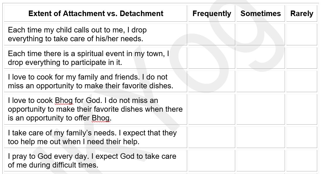 What is the extent of our detachment from the material world? Assess the extent to which your mind is detached from the world and proportionately attached to the divine realm. A downloadable tracking sheet available for you to use.