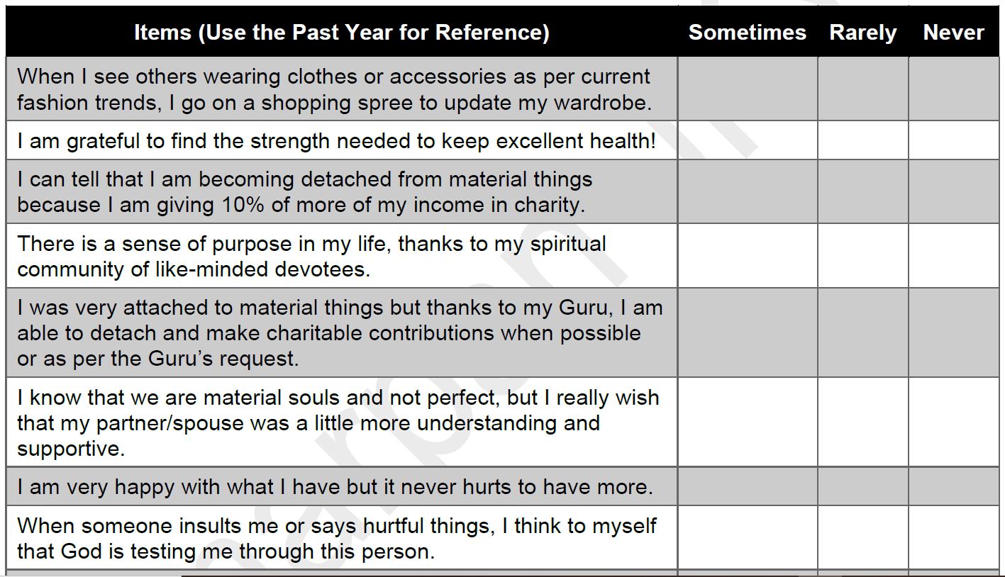 - Find time to also contemplate on the purpose of life and the extent of attachment vs. detachment to spiritual vs. material goals.