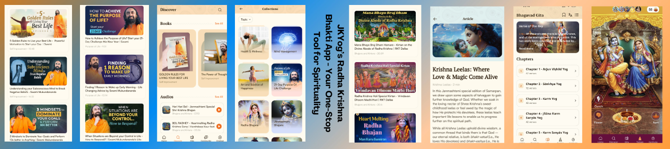 JKYog, under the guidance of its Founder, Swami Mukundananda ji, launched a very amazing app called Radha Krishna Bhakti App. It is the world’s first and only AI-powered app for Bhakti Yog. It integrates ancient wisdom with modern technology, fostering a deeper connection with spiritual teachings and practices. It provides access to all the tools that are necessary to rise higher on the spiritual path. For example, it provides access to the Bhagavad Gita in six languages with an audio recording of all 700 verses. It also has the capacity to allow users to join live events with Swamiji and events at the Radha Krishna Temple of Dallas (Allen), the official Headquarters of JKYog.
