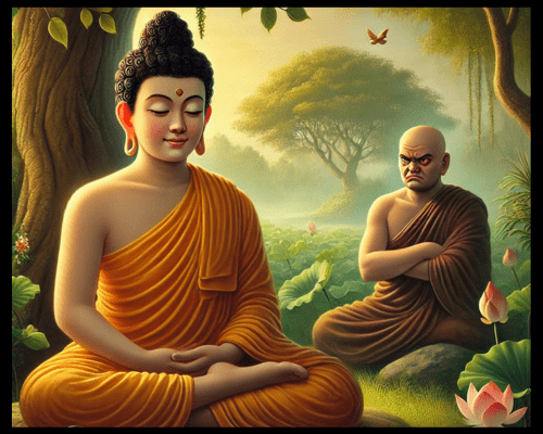 This is beautifully illustrated in the life of Devadatta, a cousin and former disciple of Lord Buddha. He is a historical example of someone whose jealousy toward his enlightened teacher led to complete spiritual ruin. Initially, he practiced spirituality under the Buddha, but later, Devadatta grew envious of His spiritual influence and attempted to harm Him and create a schism in the Sangha. He demanded that the Buddha retire and hand leadership over to him and proposed extreme ascetic rules to gain followers. Devadatta also attempted to murder the Buddha multiple times by releasing a wild elephant, dropping a boulder, etc.