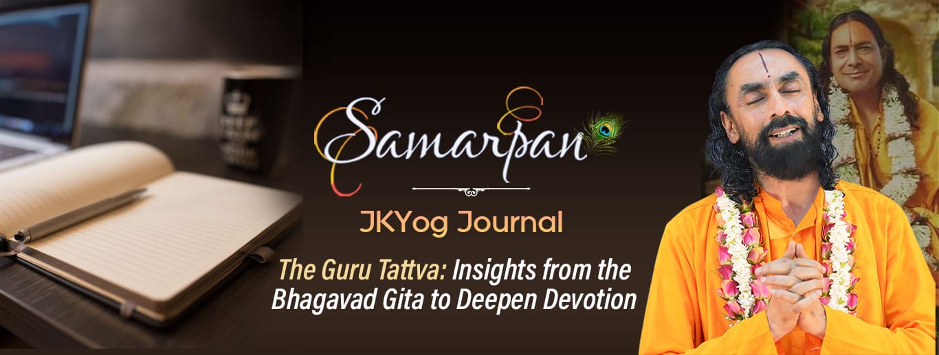 The presence of a true Guru in one’s life is a rare and divine blessing. Vedic scriptures offer deep revelations about the Guru’s role as the guiding light who leads the soul from darkness to spiritual clarity. In this issue of JKYog’s E-Journal, Samarpan, we highlight select verses from the Bhagavad Gita that glorify the Guru’s virtues, aimed at enriching our understanding, strengthening our faith, and kindling deeper love and devotion.
