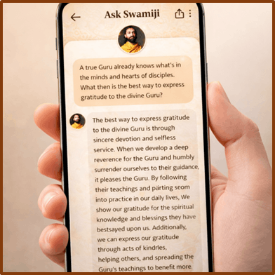 The Ask Swamiji feature within the Bhagavad Gita Krishna Bhakti App revolutionizes spiritual support by providing instant, AI-driven guidance based on Swamiji’s teachings and sacred Vedic scriptures. By bridging the gap between traditional mentorship and modern accessibility, it allows seekers to receive personalized, scriptural perspectives on complex life issues such as the purpose of life, karm, ethics, our relationship with God, etc., at any moment.
