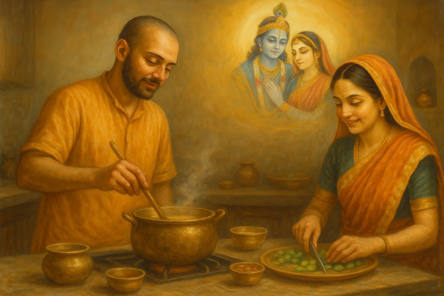 • Cooking with devotion transforms meals: Preparing food with loving intention and offering it to the Divine turns ordinary cooking into sacred practice.