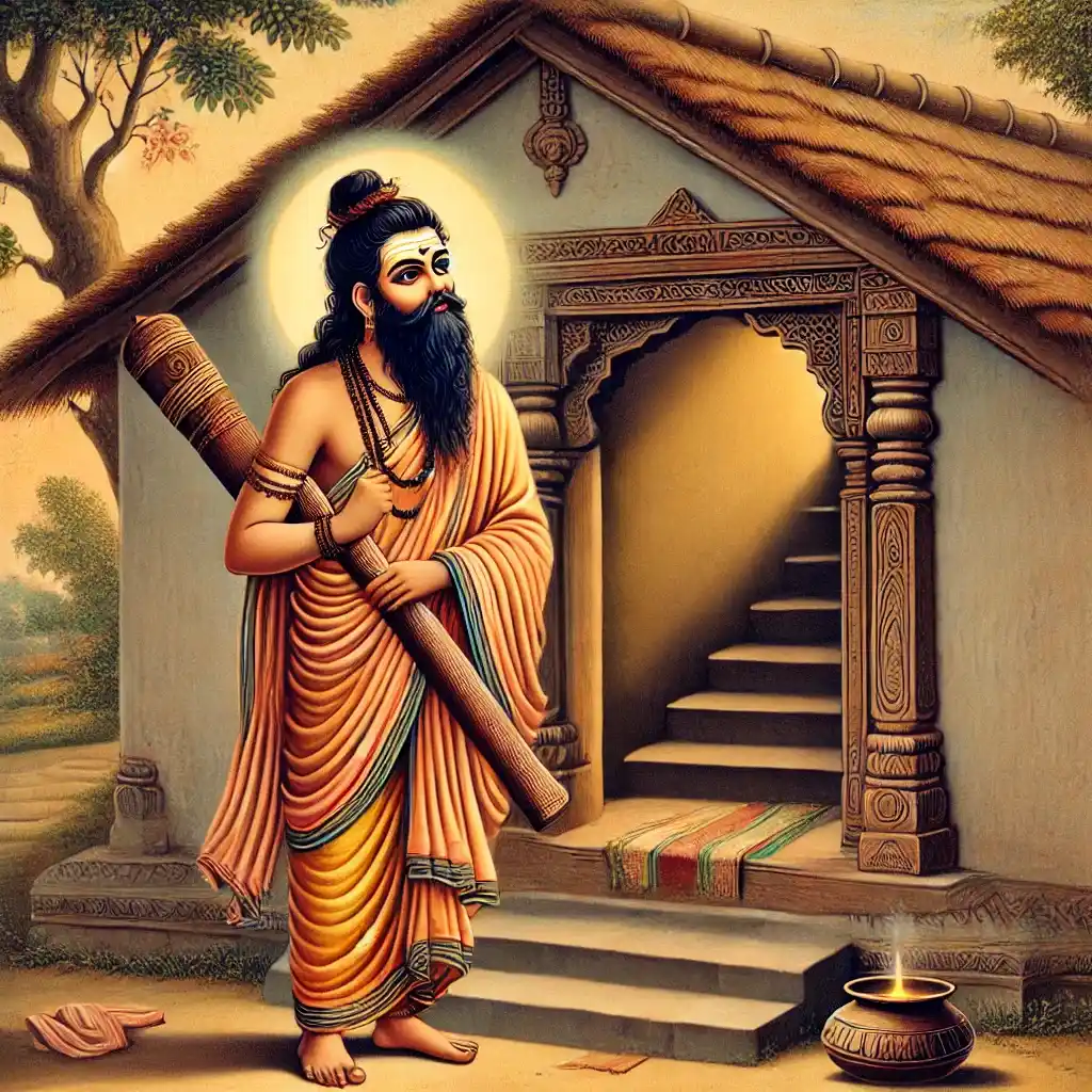 Sage Narad, the eternal traveler among the worlds and devotee of the Lord, became aware that the Supreme Being had taken birth on Earth. He journeyed to Gokul to have darshan of the avatar. As he approached the house of Nanda Baba and Mother Yashoda, he witnessed a simple domestic scene—one that carried the weight of spiritual truth far beyond the surface.