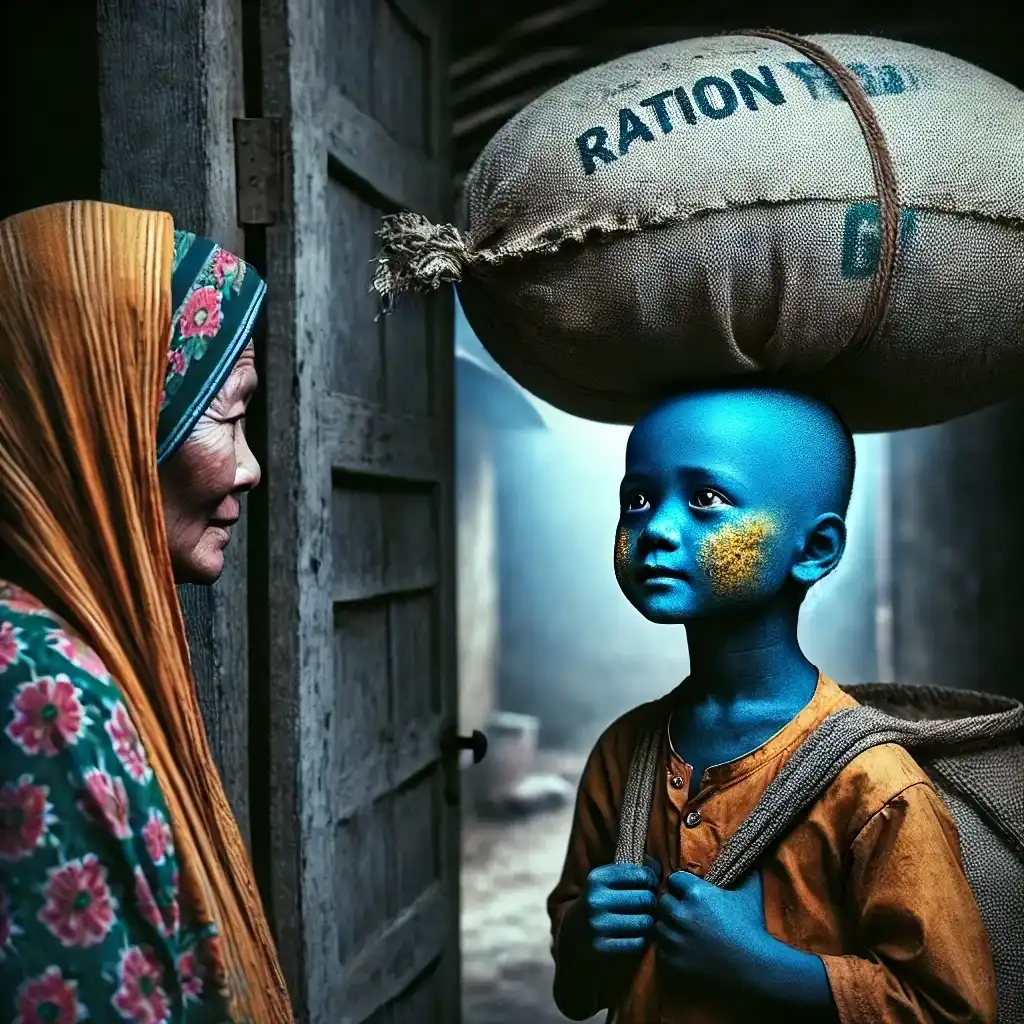 One day, as Mishra went to bathe in the river, his wife lamented over the lack of food at home. Suddenly, a young boy appeared at their doorstep carrying heavy sacks of provisions. The boy’s face was bruised, and he seemed exhausted. When Mishra’s wife opened the door and asked about his identity. He replied, “Jagannath Mishra has sent all these rations for you.” When she inquired about the bruises, the boy replied, “Your husband got annoyed and hit me many times.” She was outraged and awaited her husband’s return to scold him.