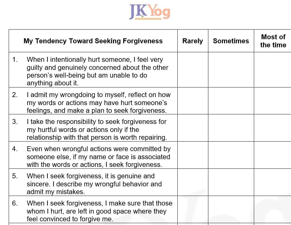 In this section, we turn the mirror on ourselves, examining our habits when it comes to seeking forgiveness from others. The ten statements in this section cover various scenarios and behaviors, including: