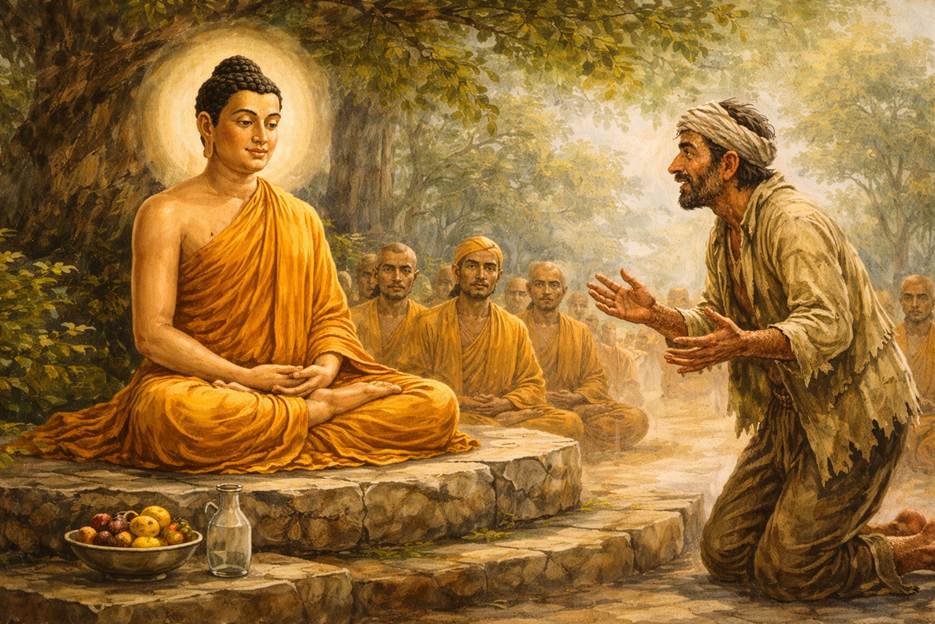 Buddha turned to his disciples and said, “Give this man some water and food. He seems tired. Once he recovers his energy, he may continue.”