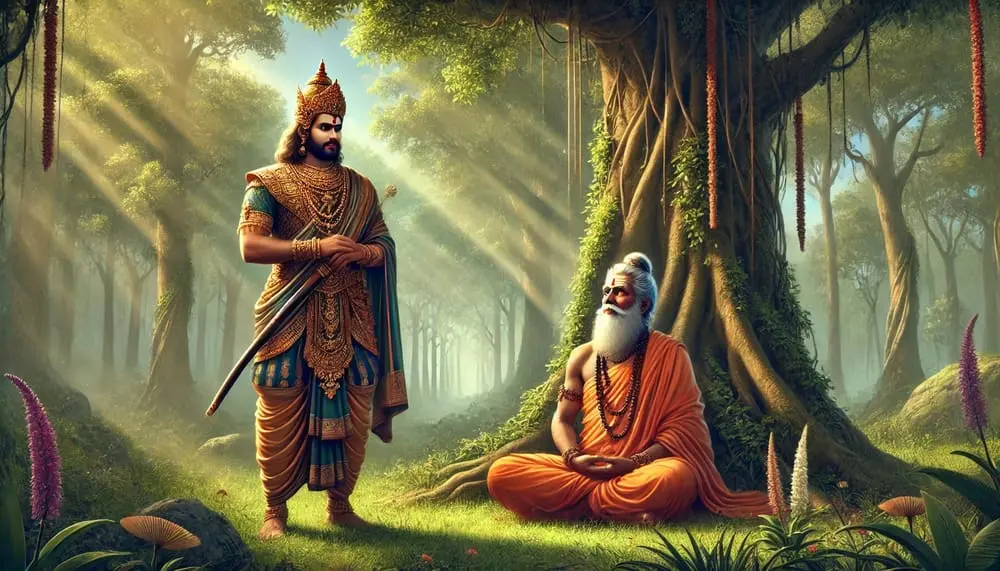 One day Parikshit entered a forest and came across the sage Shamik Rishi, who was deep in meditation. Thirsty and in need of water, Parikshit requested water from the sage. However, the sage, absorbed in his meditation, did not respond. Feeling insulted, Parikshit picked up a dead snake and draped it around Shamik Rishi’s neck, unaware of the grave consequences of his actions.