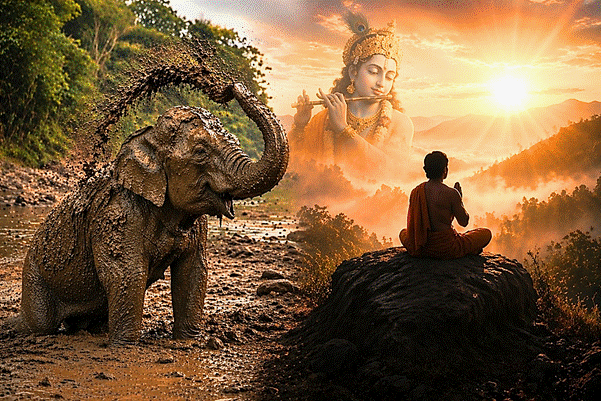 Consider a simple analogy. A person may commit a crime, be punished, and serve time in prison. Upon release, he is no longer legally an offender—but has his inner nature changed? Not necessarily. Some even begin plotting their next crime while still behind bars. Punishment or external atonement does not uproot the tendency to sin. Shukadev compares this to an elephant’s bath: the animal cleans itself thoroughly, only to throw dust upon its body again.