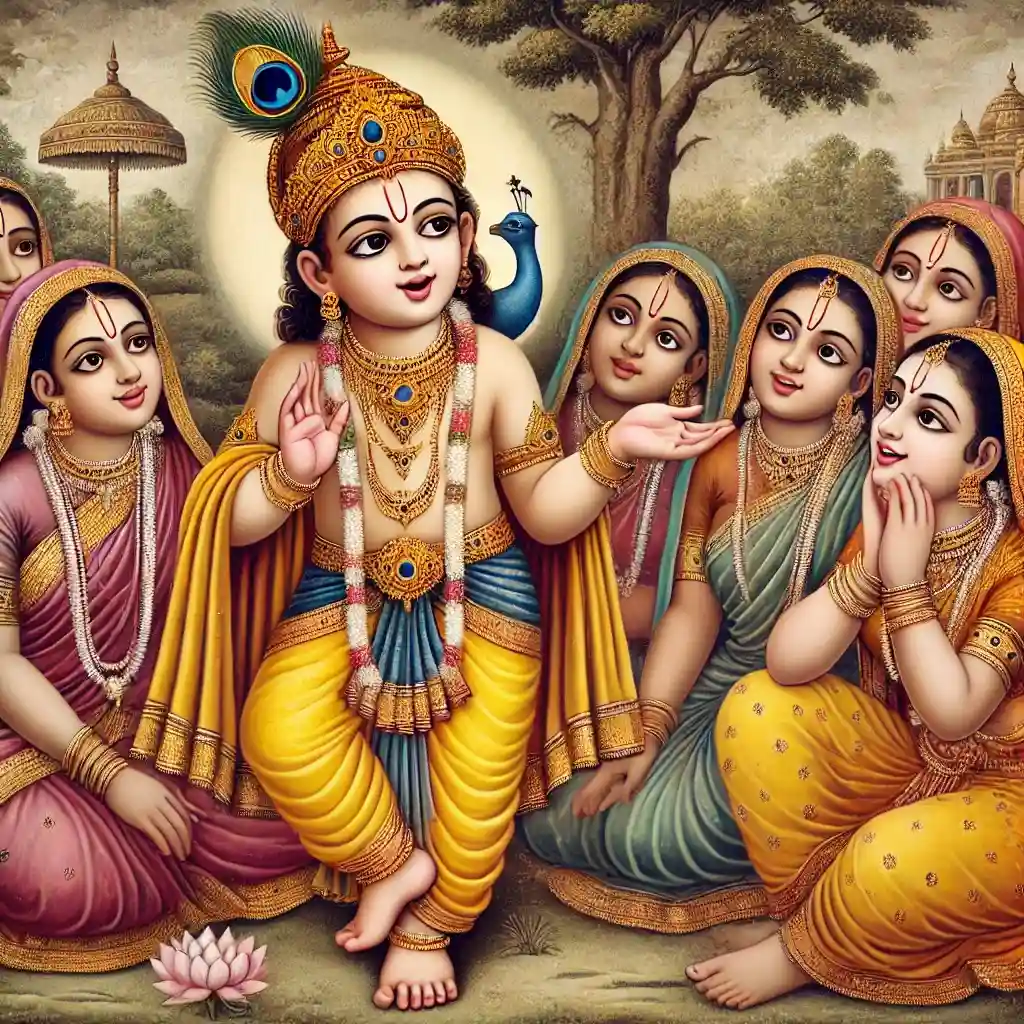 Their wives, however, untrained in the Vedas, had already achieved what their husbands could not. They saw Shree Krishna with the eyes of love. The Brahmins admitted this truth with humility, acknowledging that their wives had reached a spiritual height unattainable by their rigid path of karma and gyan alone.