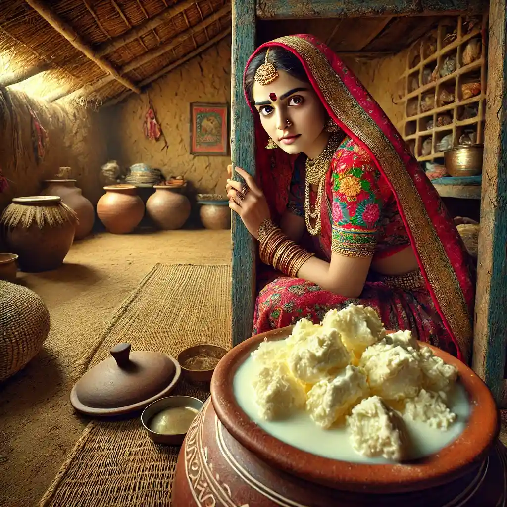In one memorable incident, a newly married Gopi, curious to see Shree Krishna, challenged her simple mother-in-law. She declared that she would catch the thief red-handed. She hid behind furniture, waiting with butter kept in plain sight.