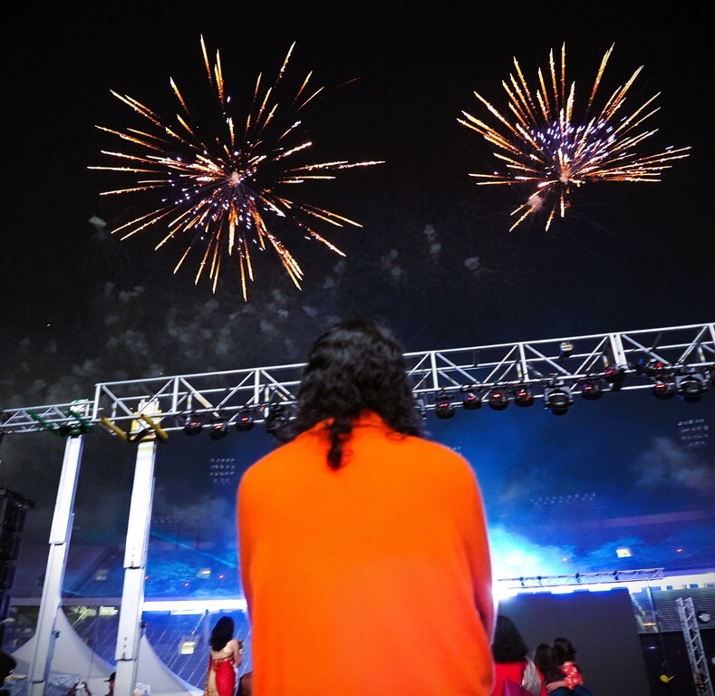 Festive Fireworks - Swamiji and community celebrating the triumph of light
